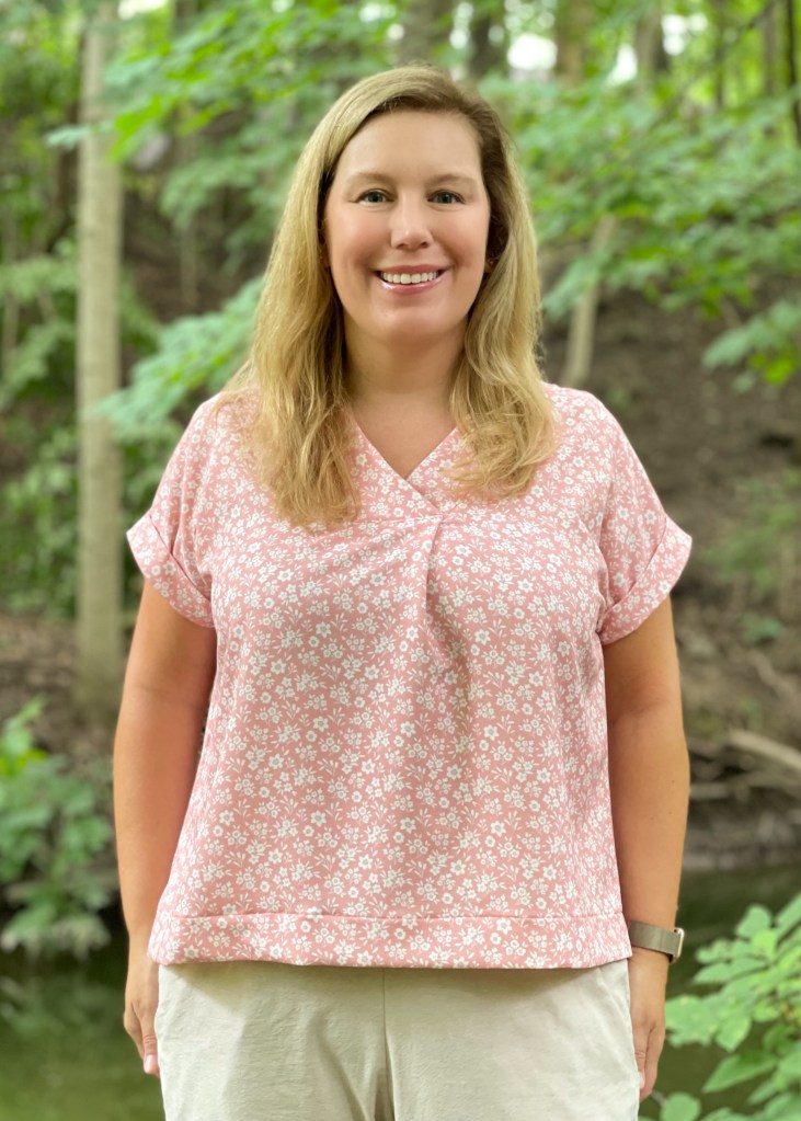 Since you can choose any pattern, I chose to make a Vivace Dolman in this ditsy floral print stretch crepe. I actually made a Vivace Dolman dress last fall in this same print in red. I wanted a top to be able to wear to work.