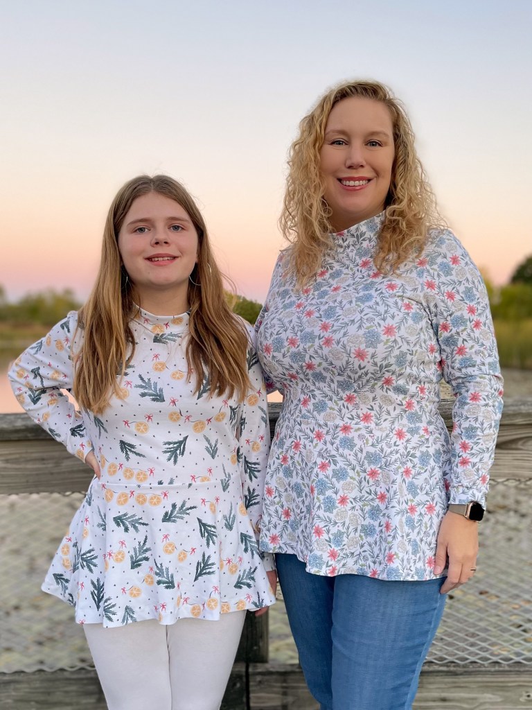 This is my favorite Margot Peplum. This was a few years ago for the release of the Raspberry Creek Fabrics Holiday Collection. I had coincidentally made a Glissando Skirt that coordinated perfectly.