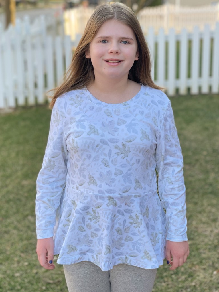 So the Love Notions Ambassadors were offered their favorite pattern to giveaway during the October sale. As you might imagine, this was a difficult task for me. So, I gave Tessa a list of all my makes for the sale and her pick. This was perfect for us, because I love the Margot Peplum, but Elise really, really loves it.