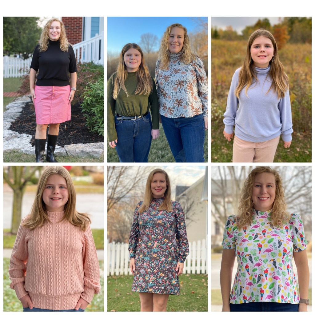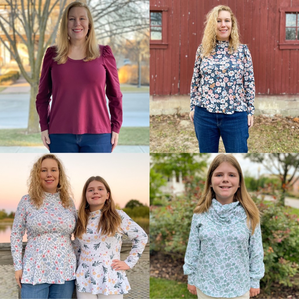 Here are some of our many Arlingtons. I added the Laundry Day Tee cowl to it for Elise. I’ve mashed it with the Margot Peplum. If I don’t use the bottom band, I instead trace over the Classic Tee hem. The options are endless.