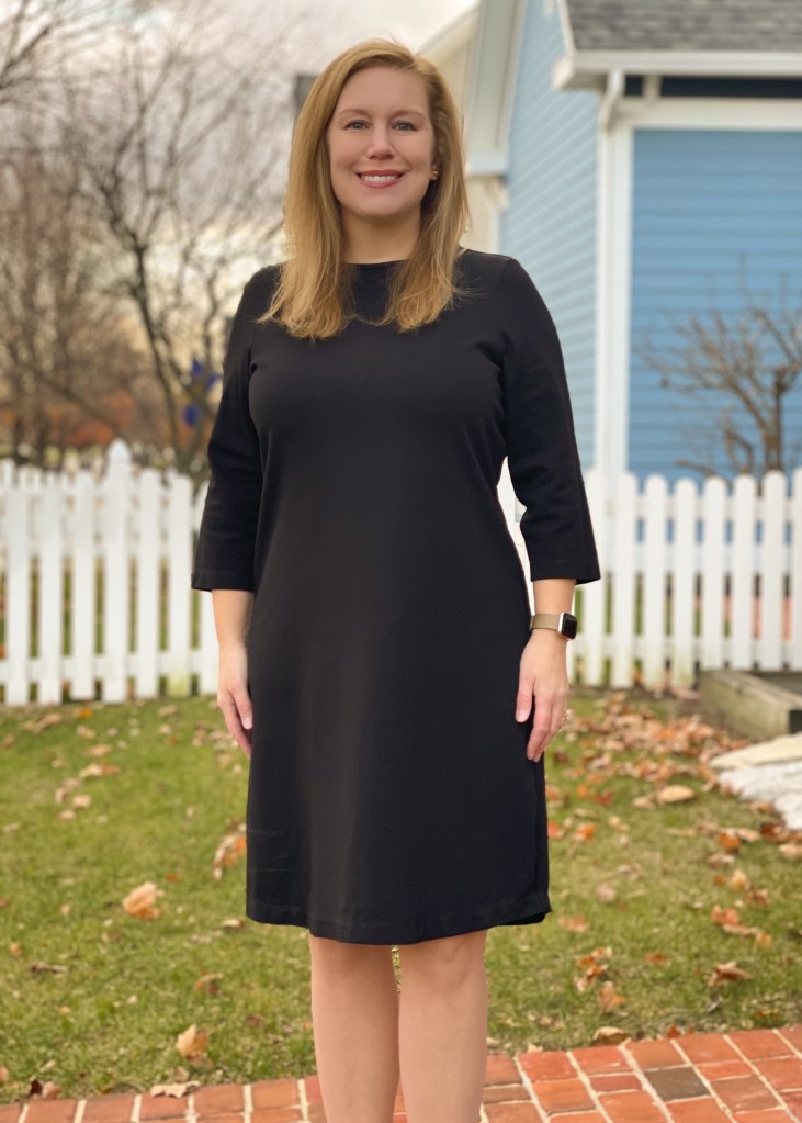 And you can’t talk about beautiful Love Notions dress patterns without mentioning the Tessa Sheath Dress. This was one of the first dresses that I made myself and it was in a gorgeous teal green for a Christmas Party for my husband’s work. I don’t even remember the source and didn’t take photos of my makes back then. But I think this looks sophisticated in the black Ponte De Roma knit from Raspberry Creek Fabrics. This pattern is good in so many fabrics, though. I’ve used stretch velvet with great success and my daughter even requested Raspberry Creek Fabrics sweatshirt fleece and it was amazing.