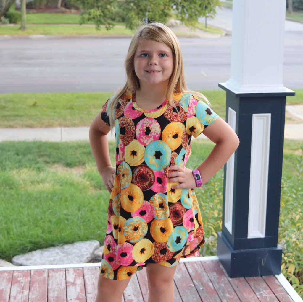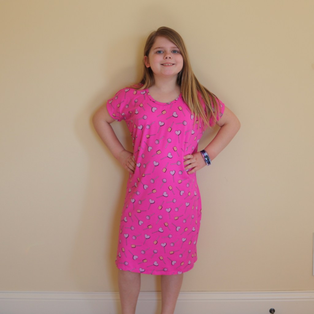 Finally, here is a case of what is not desired with your fabric choice. Elise had loved this print in cotton Lycra, so I bought her some more the following year, but in her favorite double brushed poly. It is the beautiful Penelope Princess Seam Dress pattern by Made By Mermaids. But she ended feeling like she was wearing pajamas, so it didn’t get much wear.