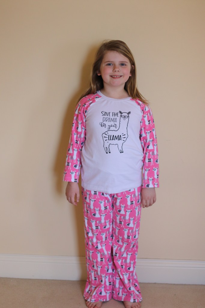 I used the Made for Mermaids Lexi and Lou Loungers pattern with their Ava Tunic to make this pajama set for Pajama Day at school.